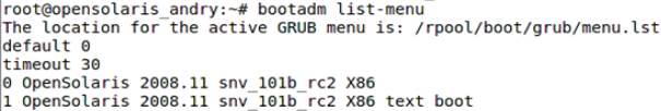 Then setting up again to load the default Solaris operating system, entry number = 0